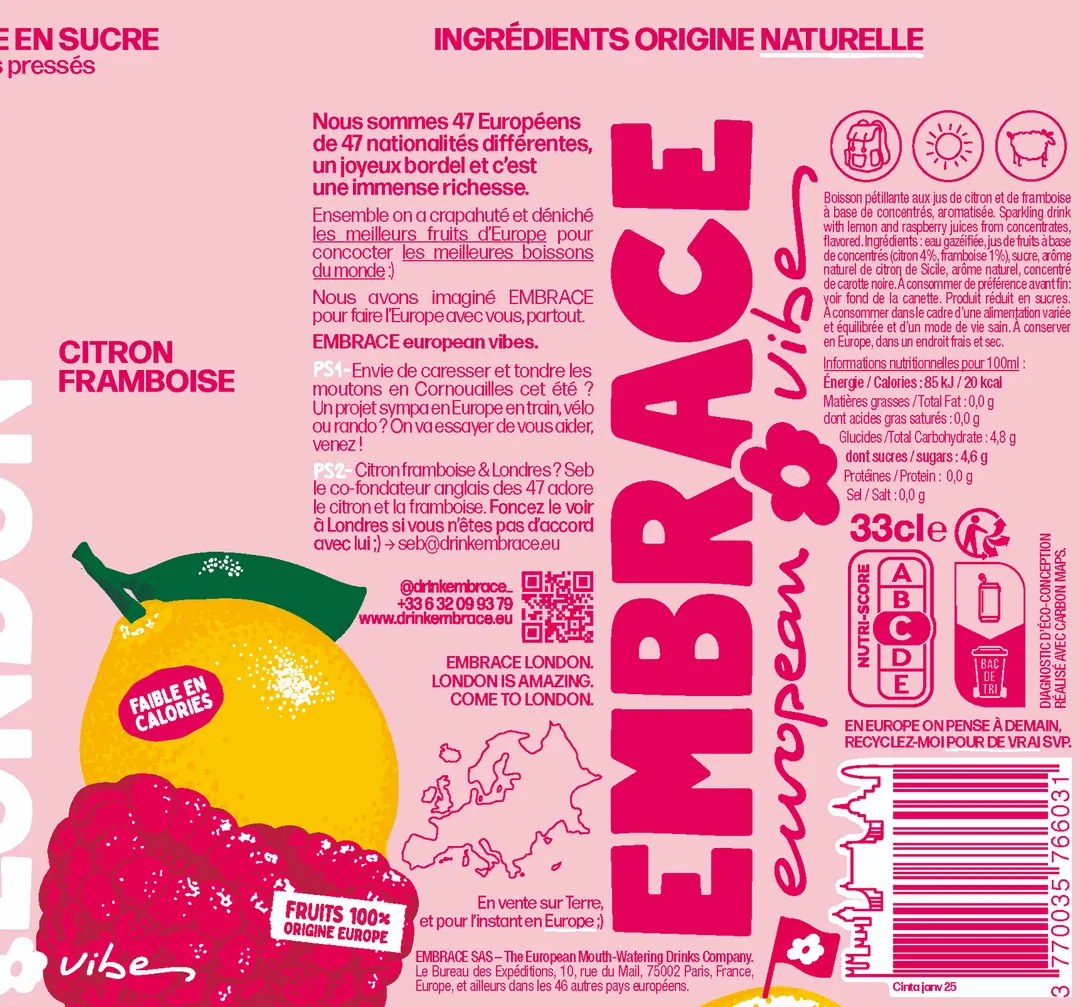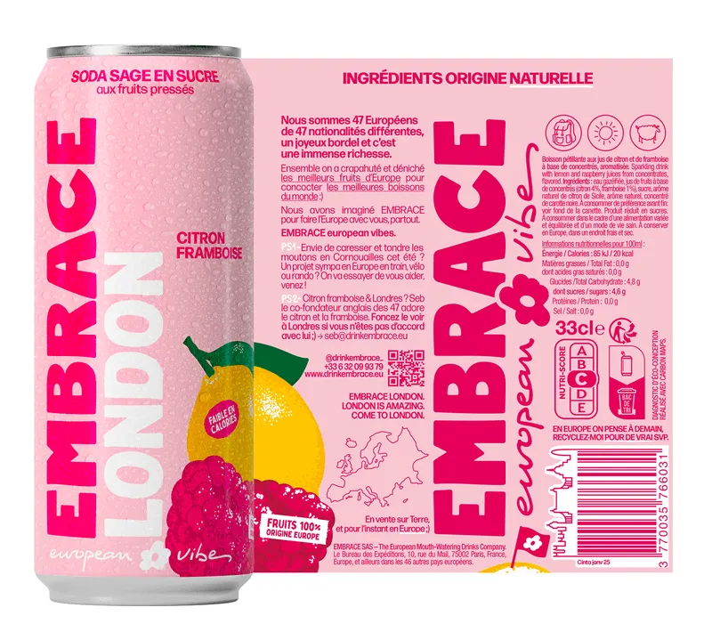 Citron Framboise, c’est le parfum préféré de Seb, le co-fondateur anglais qui vit à Londres. Un citron "jus" acidulé sublimé par de belles notes fruitées / boisées de framboise. C'est vibrant, c'est clivant, c'est iconique. C'est London.